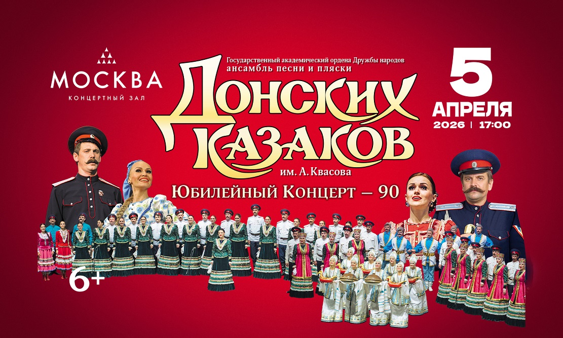 Юбилейный концерт в честь 90-летия Ансамбля Донских Казаков состоится в день рождения Ансамбля – 5 апреля 2026 в 17-00 в концертном зале «Москва» в рамках музыкального проекта «Имена на все времена».