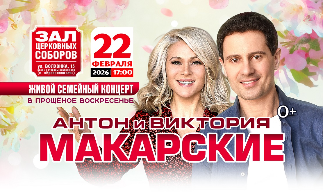 22 февраля 2026 в воскресный день в 17-00 в красивейшем столичном Зале Церковных Соборов состоится долгожданный живой семейный концерт Антона и Виктории Макарских в день Прощёного воскресенья.