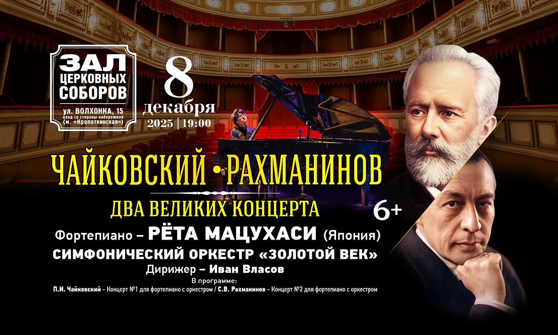 Музыка П.И.Чайковского и С.В.Рахманинова – ярчайших представителей русской композиторской школы – прозвучит 8 декабря 2025 в одном из лучших столичных залов – Зале Церковных Соборов Храма Христа Спасителя.