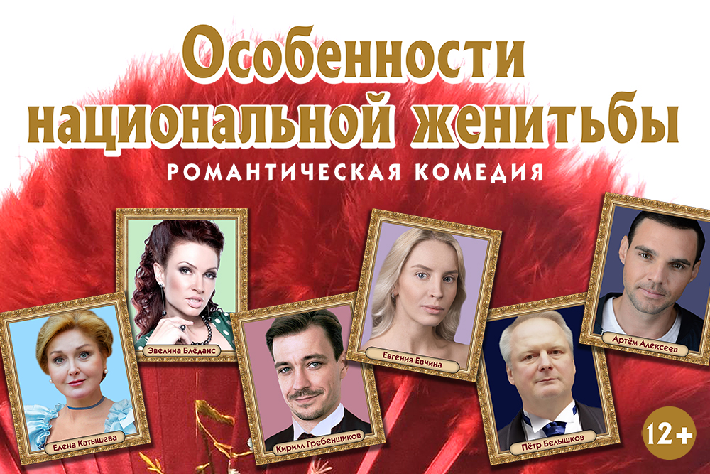 Название спектакля «Особенности национальной женитьбы» очень символично и неслучайно. В наши дни, так же, как и в прошлые времена, цинично и расчётливо, без тени стеснения и намека на любовь, ради собственной выгоды люди готовы идти под венец, связывая свои судьбы. Деньги во главе всего, поддельные бумаги, женитьба по расчету, интриги, волки в овечьей шкуре. Но, по классике жанра, на всякого хитреца находится еще более хитрый.
